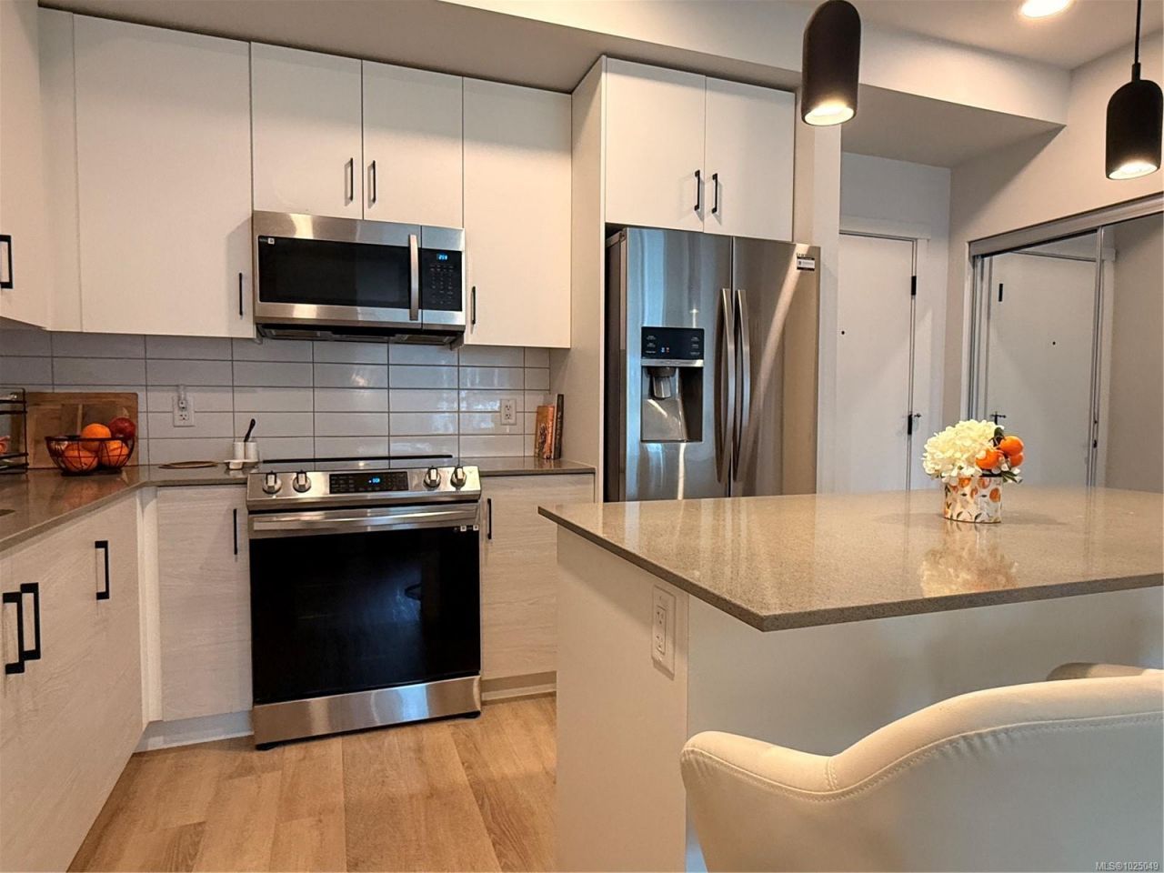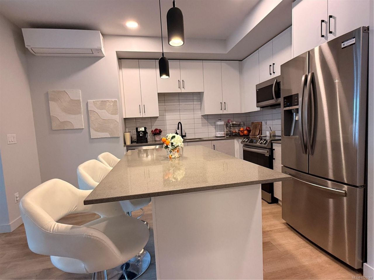 Welcome to SkyGate, a modern ground-floor 2 bed, 2 bath condo offering comfortable, low-maintenance living with easy outdoor access. This well-designed suite features luxury vinyl flooring, 9' ceilings, LED lighting, and an energy-efficient heat pump for heating and cooling. The contemporary kitchen includes soft-close cabinetry, quartz countertops, a bright island, and stainless steel appliances, flowing into an open living space. A spacious in-suite laundry room provides added storage and functionality. The ground-level location offers convenient access for pet owners, making it easy for dogs to come and go. Bedrooms are well separated...read more