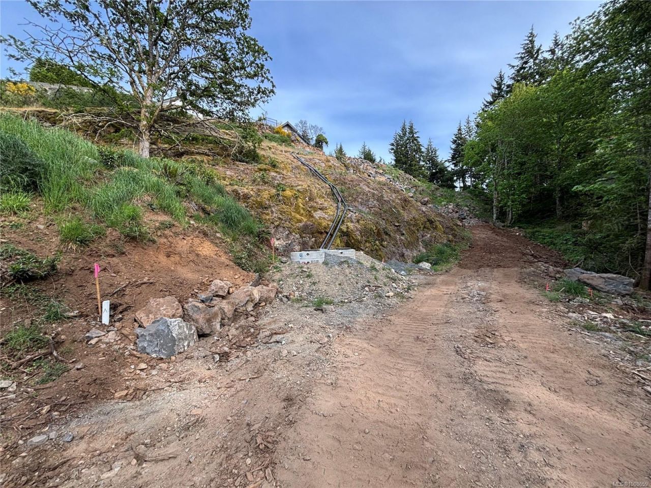 Tired of small lots and closed in subdivisions? Rare extra large 12,410 sq ft Legal Duplex lot, allows legal suite each side & detached carriage house each side. Fully serviced on Sewer. Fee Simple lot(Not strata). Live one side, sell or rent other. Sloping drop down lot, main level entry and living, bedrooms up, suite down each side.$10,000 build plans included (or bring yours) ready for permit,West Coast Modern 3,000 sq ft/Side,w/suite on lower level per side. 70% of site prep blasting completed,leaving typical lot prep/final blasting to suit(est. avail.). Ideal 3 story. 2 Sewer connections at bottom of lot,all gravity. *Pleasant views,ocean...read more